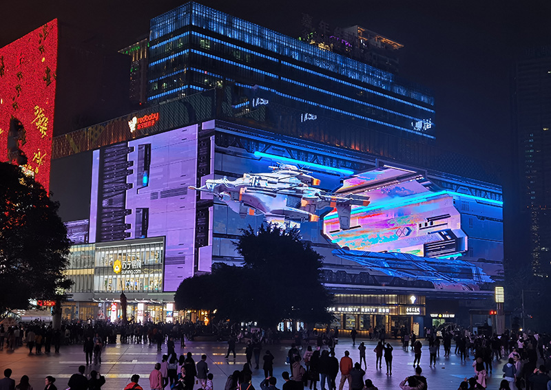 这几年,裸眼3D显示屏逐渐成为LED屏企的明显产品,助力了很多城市地标建筑打造网红打卡地。比如大家熟悉重庆观音桥、成都太古里等。不可否认,裸眼3D技术应用已经有几十年的时间,但为何突然这几年火起来,主要原因可能来自两个方面,一方面是国内文旅夜游产业的掀起,另外一方面LED显示行业在商业逻辑上的升级,用户更多注重数字内容板块。