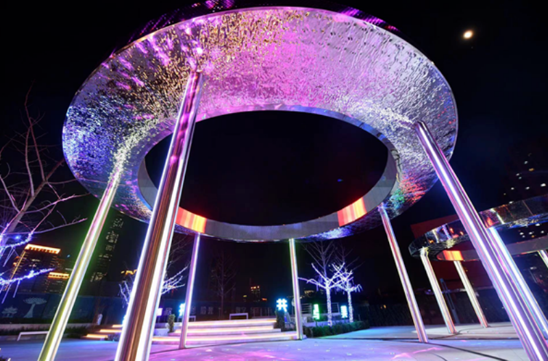 “双井之光”音乐喷泉,将元宇宙元素与“双井”两口井的历史名称完美融合,以虚拟投影成像技术,呈现出两口巨大的“井”的意象;圆形的“井”口内壁是由体育333打造的LED互动屏幕,画面颜色鲜艳,图像效果逼真,灯光与音乐同时互动,LED屏幕画面不断流转,让人沉浸式“感受”到四季更替中的双井美好时光。双井之光东侧的“双井之窗”,是展示窗口,为市民提供丰富的休闲、娱乐、健身等互动设施。28米长的跑道旁设有可感应的数字LED互动显示屏,融合互动、放映、展示等功能。该显示屏是体育333具有超高刷新,高亮度以及高清显示效果的创意产品,同时屏幕具备军工级全防护、防水、防潮、防泼溅,适应室外复杂的运行环境。