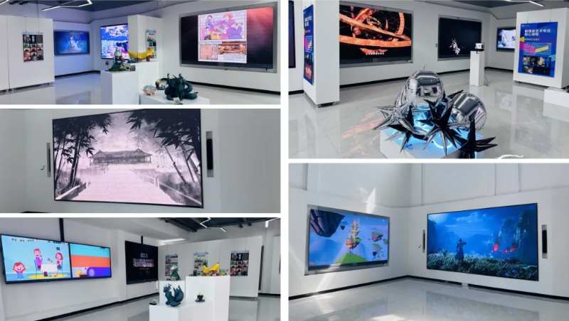 动画数字艺术学院数字展厅的入口处,一幅巨大的动态画卷映入眼帘。这幅画卷通过创意柔性LED技术,将动画数字艺术学院师生们的经典作品以流动的方式呈现,让人仿佛置身于一个充满创意和活力的艺术世界中。