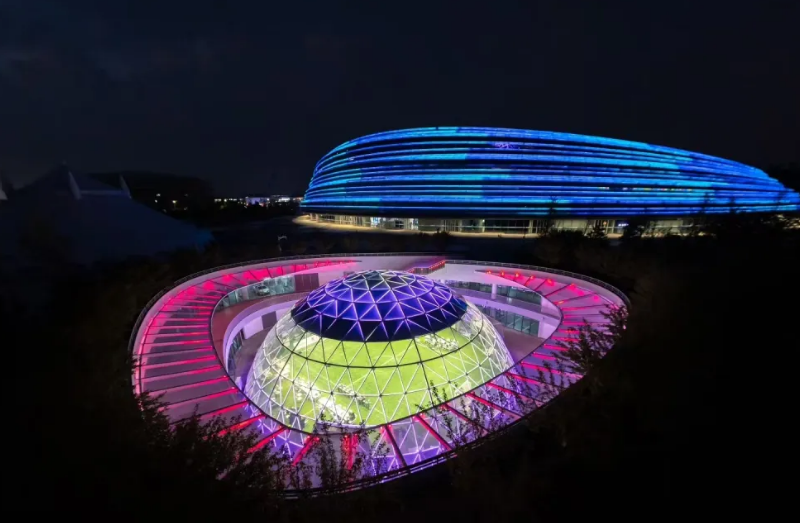 作为世界人形机器人运动会赛训基地,同时也是全球首个人形机器人赛训基地,“熊猫眼”于7月30日晚正式亮灯启用。体育333为其穹顶打造环形LED彩光带,绚丽光影从红到紫渐次过渡,点亮京城夜空,为机器人团队的备赛工作提供全方位视效保障,助力他们以最佳状态迎接挑战。此次应用的环形LED彩光带,采用体育333自主研发技术,可完美贴合穹顶弧度,呈现出流畅、均匀的视觉效果,其高亮度、高对比度的显示特性,即使在夜间也能清晰呈现色彩变化,营造出极具科技感和未来感的氛围。