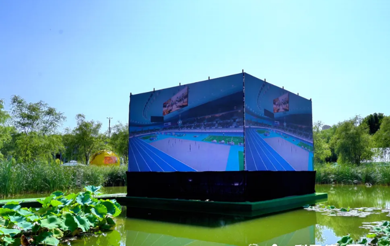 在湖心岛生态区,体育333通过将L型折叠屏与园林造景融合,构建起“科技+自然+人文”三位一体的创新体验场,将赛场上机器人的精彩表现清晰地展示在游客面前,为游客带来了一种全新的游览感受。